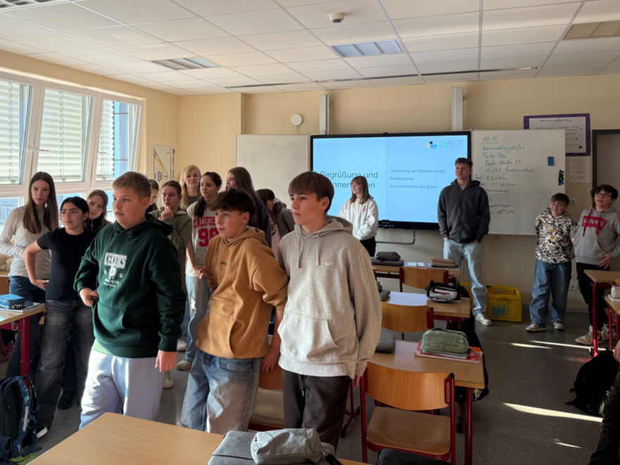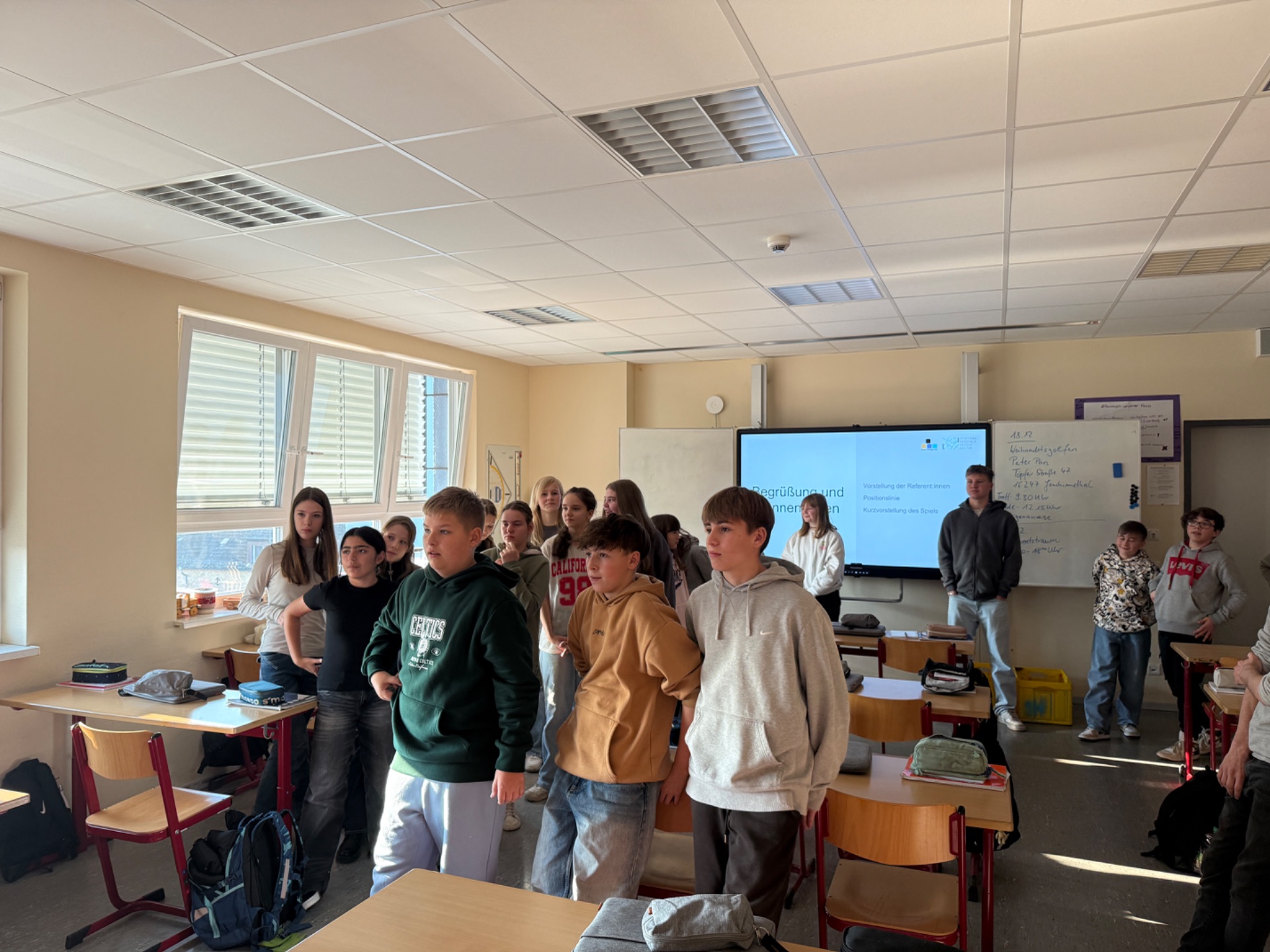 Zum Abschluss bedankte sich die Klasse 7b herzlich bei Jacob und Tom für die spannende und lehrreiche Unterrichtseinheit. „So macht Geschichte richtig Spaß!“ – lautete das einstimmige Fazit der begeisterten Schülerinnen und Schüler.
