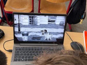 Am 07. November erlebte die Klasse 7b einen ganz besonderen Geschichtsunterricht: Im Rahmen des Projekts „Games nutzbar für den Unterricht“ stand ein digitales, kindgerechtes Lernspiel zum Thema Zweiter Weltkrieg auf dem Stundenplan.