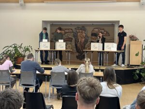 Im Publikum werden dann auch Lotti und Zoey sitzen. Ihr Lehrer und AG-Leiter Bastian Maschmeier lobt sie: „Dass Lotti und Zoey mitgemacht haben und gegen Schülerinnen und Schüler von verschiedenen Gymnasien angetreten sind, freut uns sehr. Dafür, dass Zoey noch gar nicht so lange bei Jugend debattiert ist, hat sie ihre Sache sehr gut gemacht. Und Lotti fehlen in beiden Debatten jeweils 5 Punkte, um auch ins Finale einziehen zu können. Das ist in Anbetracht der Umstände ein schöner Erfolg für sie!“