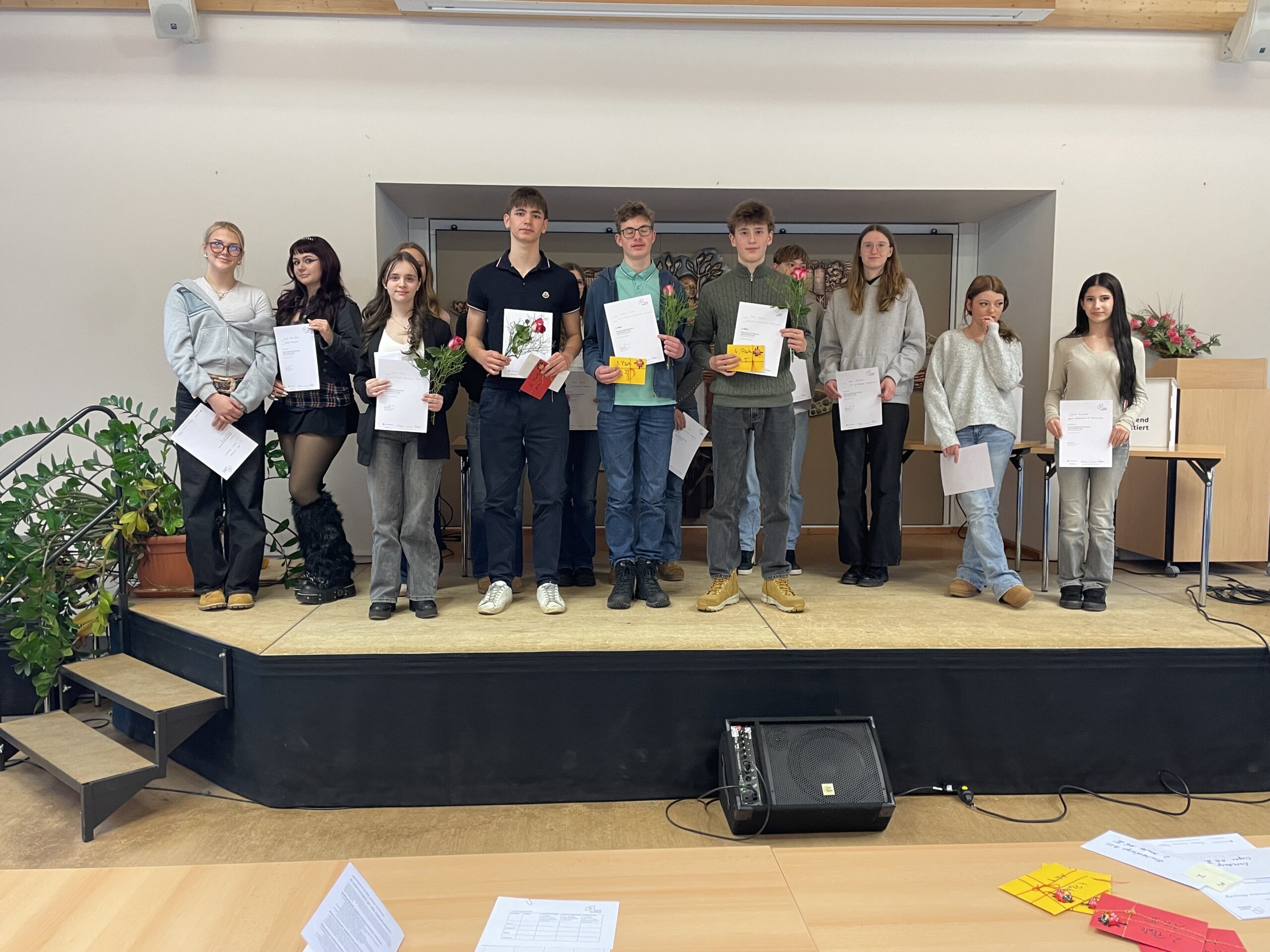 Bastian Maschmeier nutzt die Gelegenheit, sich bei allen zu bedanken, die hinter dem „problemlosen Einspringen“ der Schule Finowfurt standen: „Von den Jahrgängen 7 bis 10, die auf Wandertag waren, über die Sekretärin Frau Pigard, die die anwesenden Lehrer versorgte, und die Mitarbeiterin der Küche Frau Lamprecht, ohne die das Catering der 10a nicht möglich gewesen wäre. Es war eine echte Teamleistung.“