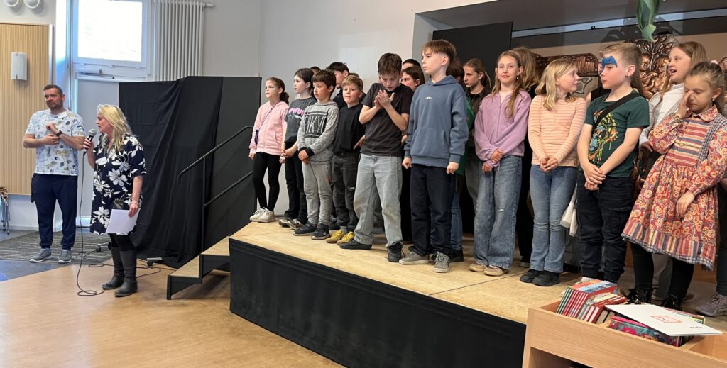 Dreißig Schülerinnen und Schüler der Klassenstufen 2 bis 6 lasen am Donnerstag, dem 16. April, ihren Klassen vor. Bewertet wurden sie dabei von Jurys aus Kindern und Lehrkräften ihrer Klassenstufe. Sie nahmen als die je besten Vorleserinnen und Vorleser ihrer Klassen an diesem Wettbewerb teil. So begrüßte sie auch die Direktorin Anja Gehrke-Witthuhn. „Ihr habt alle gewonnen, schon weil ihr hier teilnehmt“, sagte sie und fügte hinzu: „Lesen öffnet Türen in neue Welten.“